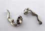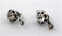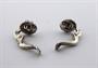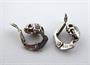 Stříbro, ryzost Ag 830/1000. Celková hmotnost 1,95 gramů. Stříbrné náušnice ve tvaru kytičky se vsazenými broušenými syntetickými kameny. Kulatý uzávěr na klipsu zdobený granulací. Značené československým puncem hlava zajíce s číslem 5. Evropa první polovina minulého století. Výška 16 mm.
