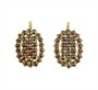 Stříbrné zlacené náušnice ryzosti 900/1000 s českými granáty. Celková hmotnost obou náušnic je 5,36 g. Rozměry náušnice jsou 1,9 x 1,4 cm.