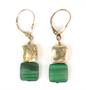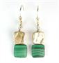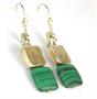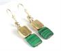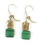 Moderní visací náušnice ze stříbra ryzosti 925/1000 zdobené malachity. Rozměry náušnic (i s háčkem) jsou: 4 x 1 cm.