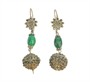 Náušnice s malachity a "gombíky" ze stříbra ryzosti 835/1000 (punc zajíc) s takzvaným africkým zapínáním (háček s malým úchytným háčkem). Celková hmotnost obou náušnic je 13,25 g. Délka náušnic je asi 5,8 cm.