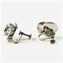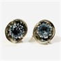 Elegantní, vkusné náušnice v bruselském stylu, spirálovitě tvarovaná hlavice ve středu s modrým kamenem kulatého brusu fasovaném v mnohokrapnové koruně. Kvalitní západoevropská či severoamerická práce z 60. let 20. století.