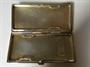 Stříbrné ploché pouzdro se smaltovanou modrou linkou, uvnitř zlacené, vyrobeno ze stříbra 800/1000, celková hmotnost 55,4 g, rozměr 8,5 x 4 cm.