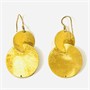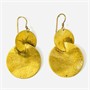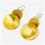 Extravagantní visací náušnice, tělo tvořeno prostorově výraznými propojenými kruhy. Celý povrch zušlechtěn efektním ručním broušením, potaženo žlutým zlatem. Patrně evropská ateliérová práce z první pětiny 20. století.