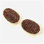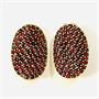 Výraznější moderní náušnice s oválnou, lehce prohnutou hlavicí, jež je v pavé osázena českými granáty kulatého hvězdicového brusu, fasováno zrnkovou technikou. Precizní granátnická práce družstva Granát v Turnově z 1. pětiny 21. století.