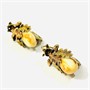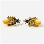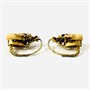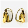Dekorativní náušnice s hlavicí každou osazenou přírodní kvalitní grandlí, nad ní motiv svazku dubových lístků, ty jsou jemně ryty a kontrastně zlaceny do žlutého a červeného odstínu. Tradičně pojatý myslivecký šperk, tuzemská zlatnická práce z 2. třetiny 20. století.