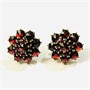 Elegantní náušnice s hlavicí v podobě kulatého květu, v řadách a stupních osázeno českými granáty kulatého hvězdicového brusu, fasováno zrnkovou technikou. Tradiční design, kvalitní granátnická práce DUV Granát v Turnově z poloviny 50. let 20. století, exportováno do Švédska na objednávku stockholmského klenotníka Heriberta Engelberta.