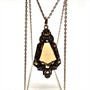 Elegantní stříbrný náhrdelník - řetízek s odnímatelným, půvabným závěsem zhotoveným počátkem 20.století ve stylu art deco. Šperku dominuje zlatavě hnědý kámen, kontrastně dozdobený markazity. Stříbro ryzosti 935/1000. Řetízek sterlingové stříbro (925/1000). Celková váha šperku 6,17 g. Délka řetízku 44 cm, rozměry závěsu 3,7 x 1,8 cm. Starý, autentický šperk ve výborném stavu.