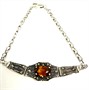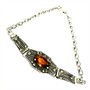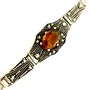 Půvabný stříbrný náramek zhotovený ve stylu Art deco. Šperk zdobí jemná rozeta osazená koňakovým madeira citrínem a elegantně se třpytícími markazity. Šperk byl zhotoven ze sterlingového stříbra (925/1000), celková váha 6,09 g. Délka 18,5 cm. Náramek byl profesionálně vyčištěn a je ve výborném stavu.