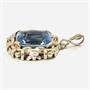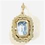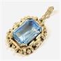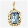 Elegantní přívěšek z období art-deco, jehož dominantou je světle modrý kámen obdélného brusu. Tělo ověsku bohatě a spletitě tvarováno, závěsné očko zušlechtěno technikou zrnkování. Dekorativní šperk z 30. let 20. století z dílny jabloneckého klenotníka Jindřicha Könega.