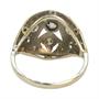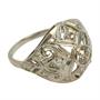 Art deco prsten výrazného tvarosloví ze stříbra ryzosti 835/1000 zdobený diamanty briliantového brusu o celkové hmotnosti 0,45 ct. Velikost 55. Celková hmotnost 2,88 g.
