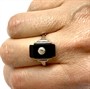 182110Stříbrný Art deco prsten s onyxem a diamantem