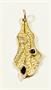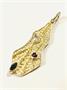 Elegantní, působivý stříbrný přívěšek asymetrického tvaru, jehož povrch je zdoben organickými prohlubněmi, mezi nimiž se táhnou vystouplé žíly ze žlutého zlata. Osazeno třemi přírodními barevnými kameny a to rubínem kulatého brusu, modrým safírem navetového brusu a křišťálem kapkovitého brusu. Povrch zadní strany zušlechtěn plastickým vzorem připomínající kůru stromu. Jemný a neobvyklý šperk, který je svým designem nepřehlédnutelným. Kvalitní autorská zlatnická práce z přelomu 20. a 21. století. Zhotoveno z nezlaceného stříbra o ryzosti 925/1000, žíly zhotoveny ze žlutého 14 karátového zlata, tj. o ryzosti 585/1000; opatřeno ryzostním číslem ze zadní strany. Hmotnost je 3,00 g. Výška, včetně očka, 37 mm, šířka 13 mm. Ve velmi dobrém stavu. Odborně vyleštěno zlatníkem.