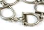 Stříbrný náramek ryzosti 800/1000 se články ve tvaru jezdeckého třmenu.