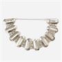Zhotoveno z nezlaceného stříbra o ryzosti 900/1000; punc S-67 (zajíc 3) u zapínání, ryzostní číslo a mistrovská značka na zapínání. Hmotnost 23,85 g, délka 19 cm, šířka 26 mm. Zapínání formou ploché patky, které je v pořádku. Ve velmi zachovalém stavu, odborně vyčištěno a vyleštěno zlatníkem.