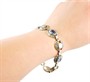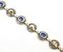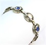 Elegantní článkový náramek vyrobený ze stříbra ryzosti 925/1000, částečně zlacený a zdobený markazity a na třech článcích výrazně modrými kameny. Délka náramku je 20,5 cm. Hmotnost 23,67 g.