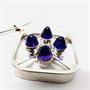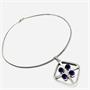 Designový náhrdelník ze stříbra. Šperku dominuje odnímatelný závěs uznávaného finského návrháře Kultaseppa Salovaara. Čistá nadčasová forma. Závěsu vévodí čtyři kónicky vybroušené ametysty sytého fialového odstínu. Drahé kameny mají přírodní původ. Stříbro ryzosti 13,96 g. Délka náhrdelníku 42 cm. Šperk v perfektním stavu.