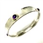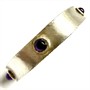 Originální, kruhový náramek. Nadčasový šperk byl zhotoven ze stříbra ryzosti 935/1000 kolem 2. poloviny 20.století. Povrch šperku je zdoben jemným, intenzivním tepáním a pěti ametysty velmi sytého odstínu, hladkého brusu kabošon. Celková váha 35,94 g. Šířka 1,2 cm. Průměr 6,5 cm. Perfektní stav.