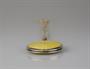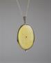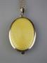 otvírací závěs s vnitřním zrcadélkem, gilošované stříbro s oboustranným světle žlutým smaltem, kolem r. 1930, pozdější italský stříbrný řetízek, Ag btto 24,35 g/935+925/1000, západní Evropa, kolem r. 1930; rozměry závěsu 3,3 x 6 cm, délka řetízku 42,5 cm; atest Puncovního úřadu