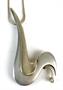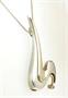 Výrazný stříbrný náhrdelník v abstraktním bruselském designu, matné částečně zlacené stříbro, ryzost 925/1000, celková hmotnost: 21,56 g. Délka řetízku: 42,5 cm, rozměr přívěsku: 7,1 x 3,7 cm.