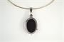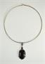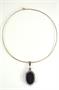 Stříbrný art deco náhrdelník přívěsem na struně, Ag 925/000, btto 33,08 g, Čechy, 40. léta 20. století, rozměr onyxu 3,5 x 2,5 g a tmavě fialový ametyst o průměru 0,6 cm.