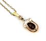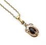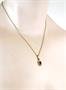 Secesní náhrdelník ze stříbra ryzosti 900/1000 (řetízek) s přívěskem z tombaku osazený almandinem broušeným do slzy a čirým kamenem. Délka řetízku 51 cm. Rozměry závěsu s očkem 2,3 x 0,9 cm.