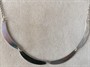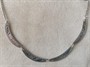 Půvabný stříbrný náhrdelník, částečně z jedné strany zdobně rytý, je zhotovený ze stříbra 900/1000, hmotnost 10,3 g, délka 45 cm. Může se nosit i s hladkou stranou.