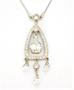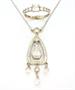 Souprava náhrdelníku a prstenu ze stříbra ryzosti 925/1000 zdobená zářivými bílými kameny imitujícími diamanty. Velikost prstenu 64. Délka řetízku 46 cm, rozměr přívěsku 5,5 x 1,8 cm. Celková hmotnost soupravy 11,78 g.