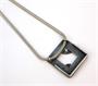 Náhrdelník ze stříbra ryzosti 925/1000 zdobený čtvercovým závěsem s obrazci. Délka řetízku 42 cm. Rozměr závěsu 2 x 2 cm. Celková hmotnost 12,56 g.