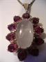 Na dlouhém stříbrném řetízku velký závěs ve tvaru květu, zhotoveno ze stříbra 925, celková hmotnost 18,65 g, délka ručně pilovaného řetízku 57 cm, délka závěsu bez závěsných oček 3,5 cm. Unikátní šperkařská práce.