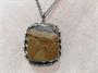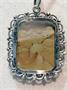 Odnímatelný závěs se zasazeným achátem s přírodní kresbou fantazijní krajiny, zhotoven ze stříbra ryzosti 925/1000, rozměr bez oček 4 x 3,7 cm, na stříbrném velmi kvalitním řetízku ze 900/1000 o délce 61 cm, celková hmotnost náhrdelníku 21/9 g.
