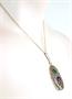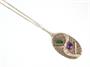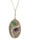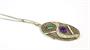Prořezávaný náhrdelník Art Deco ze stříbra ryzosti 900/1000, zdobený ametystem a zeleným kamenem. Značeno JH - Josef Hartmann, Jablonec nad Nisou. Délka řetízku: 45 cm. Rozměry závěsu: 4,5 x 2,5 cm. Celková váha náhrdelníku: 10,16 g.