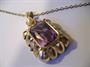 Stříbrný pozlacený náhrdelník se skládá s odnímatelného přívěšku s přírodním ametystem a perličkou (stříbro 835/4,85 g, na výšku bez oček měří 2,5 cm) a řetízku (900/1,9 g, délka 50 cm). Krásná šperkařská práce.