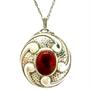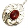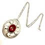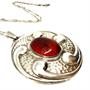 Výrazný, půvabný, stříbrný náhrdelník - řetízek s odnímatelným závěsem větší velikosti. Šperk secesního charakteru zdobí na středu ovál s červeným emailem, zarámovaný plastickým dekorem s ručním tepáním. Stříbro ryzosti 800/1000. Řetízek o délce 49 cm je vyroben ze sterlingového stříbra (925/1000). Celková váha 13,81 g. Velmi dobrý stav.
