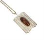Výrazný náhrdelník ze stříbra ryzosti 835/1000 zdobený jantarem, rozměry 5,3 x 3,8 cm!!!. Řetízek ze stříbra 925/1000. Délka řetízku 60 cm. Celková hmotnost 19,88 g.
