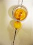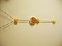 Designově zajímavý stříbrný náhrdelník, stříbro 800, celková hmotnost 11,25 g, punc lilie. Délka řetízku 51 cm, délka ozdobného středu s jantarovými kuličkami 12 cm.