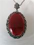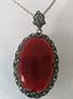 Prvorepublikový náhrdelník s velkým závěsem, který je osazen dokonale vybroušeným přírodním karneolem olemován markazity. Délka řetízku je 60 cm, má ryzost 925/100, závěs má celkovou výšku 4,5 cm. Celková hmotnost náhrdelníku je 9 g.
