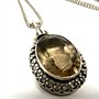 Půvabný, dlouhý, prvorepublikový náhrdelník. Nevšední řetízek zdobí odnímatelný závěs osazený velkým, fazetově broušeným, kouřovým topazem. Šperk byl zhotoven ze stříbra ryzosti 800/1000 v první polovině 20.století. Řetízek délky 61 cm ze sterlingového stříbra (925/1000). Celková váha šperku 10,15 g.