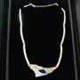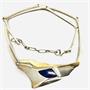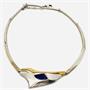 Autorský náhrdelník vyrobený ze stříbra ryzosti 925/1000, o celkové váza 35,35 g. Asymetrický, plastický s matovaným povrchem z části pozlaceno. Inspirace přírodou. Osazeno kobaltově modrým lapisem lazuli. Autorská značka. Nastavitelná délka pomocí přídavného řetízku. Délka 41 + 5 cm