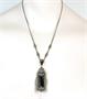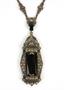 Náhrdelník ze stříbra ryzosti 935/1000 zdobený onyxem a markazity. Z období první republiky. Celková hmotnost: 16,20 g. Délka: 46 cm. Délka přívěsku: 7 cm.