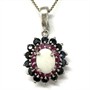 182527Stříbrný náhrdelník s opálem, rubíny a safíry - květ