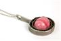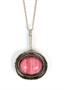 Náhrdelník ze stříbra ryzosti 925/1000, s lehce brutalistním závěsem osazeným rodonitem.