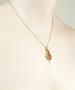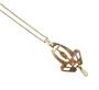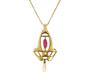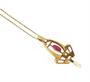 Secesní náhrdelník z pozlaceného stříbra ryzosti 925/1000 zdobený rubínem a perličkami. Délka řetízku 46 cm. Rozměry závěsu 4 x 2 cm. Celková hmotnost 3,64 g.