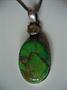 Půvabný náhrdelník - stříbrný řetízek s odnímatelným závěsem, závěs se zasazeným dominantním přírodním zeleným tyrkysem a broušeným citrínem. Řetízek byl zhotovený ze stříbra 900/1000, hmotnost 4 g, délka 50 cm, závěs je zhotovený ze stříbra 925/1000, jeho hmotnost je 7 g, výška bez očka 3,5 cm.