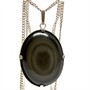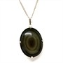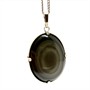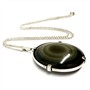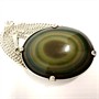 Výrazný, nevšední stříbrný náhrdelník - řetízek s odnímatelným závěsem. Šperku dominuje velký, hladce broušený oválný duhový obsidián. Závěs byl zhotoven ze sterlingového stříbra (925/1000). Rozměry kamene cca 3,5 x 3 cm. Řetízek délky 52 cm byl vyroben ze stříbra ryzosti 800/1000. Celková váha šperku 24,07 g.