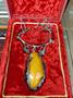 Masivní stříbrný náhrdelník s velkým přírodním jantarem,