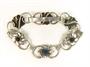 Dánský stříbrný náramek s kvítky zdobenými různobarevnými kameny. Stříbro 800/1000, délka 21,3 cm, hmotnost 18,9 g. vyrobený okolo r. 1930. ---