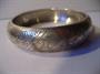 Prvorepublikový stříbrný náramek, na povrchu jemně rytý, zhotoven ze stříbra 900, váha 17,2 g, šířka 1,7 cm, vnitřní otvor 6,2 cm.