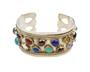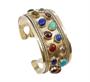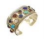 Náramek ze stříbra ryzosti 925/1000 zdobený barevnými přírodními kameny ve tvaru kabošonů. Vnitřní rozměry 6,2 x 4,5 cm. Celková hmotnost 60,52 g. Původ Makedonie.