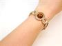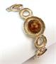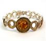 Článkový náramek ze stříbra ryzosti 925/1000 zdobený centrálním jantarem. Délka náramku 19 cm, průměr centrálního článku 2,5 cm. Celková hmotnost 39,08 g.