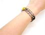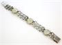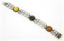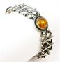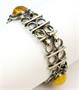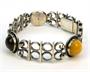 Náramek ze stříbra ryzosti 800/1000 zdobený třemi různobarevnými jantary. Délka náramku 19,5 cm, šířka 1,8 cm. Celková hmotnost 41,06 g. Designový náramek ze 60. let 20. století.